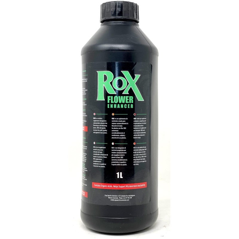 ROX es un estimulador de floración realmente potente, formulado para desencadenar una mayor producción de flores y unas flores mucho más pesadas. Con ROX consigues cosechas mucho más abundantes y productivas.